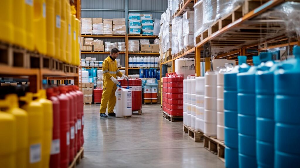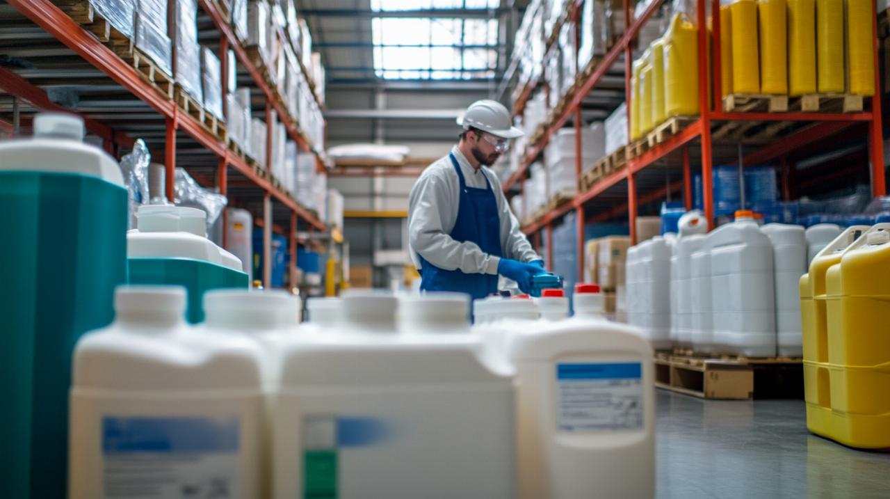 Au-delà des considérations de préservation du produit, le stockage de l’eau de Javel industrielle doit répondre à des exigences strictes de sécurité pour protéger le personnel et l’environnement. Les contenants doivent être parfaitement étanches, résistants à la corrosion et clairement étiquetés avec les mentions de danger réglementaires. Les locaux de stockage nécessitent une ventilation efficace pour évacuer les éventuelles vapeurs de chlore et prévenir l’accumulation de concentrations dangereuses dans l’atmosphère. La séparation physique entre l’eau de Javel et les autres produits chimiques, notamment les acides, les bases incompatibles et les substances contenant de l’ammoniac, constitue une règle de sécurité absolue pour éviter les mélanges accidentels générateurs de gaz toxiques. Les zones de stockage doivent être accessibles uniquement au personnel formé et autorisé, équipées de moyens d’intervention en cas de déversement et situées à distance des sources de chaleur. Cette organisation rigoureuse garantit la conformité aux réglementations en vigueur tout en assurant la sécurité au travail et la pérennité des stocks de produits désinfectants essentiels aux opérations de nettoyage industriel.
